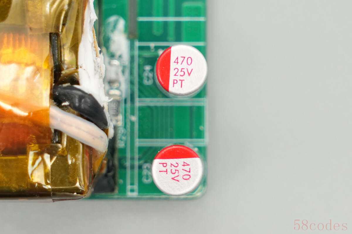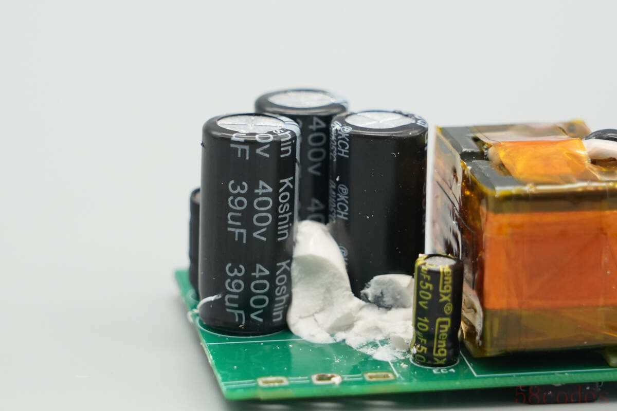 三颗高压滤波电解电容来自Koshin东佳,规格均为400V39μF。