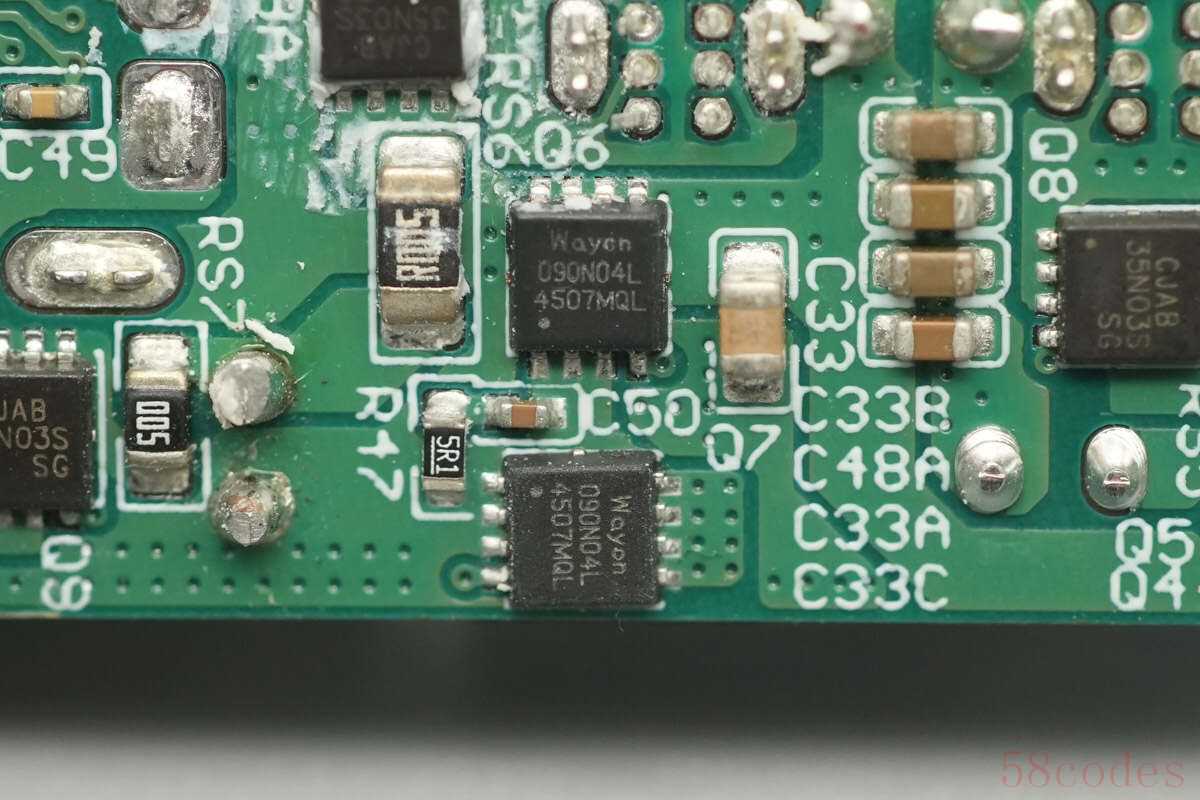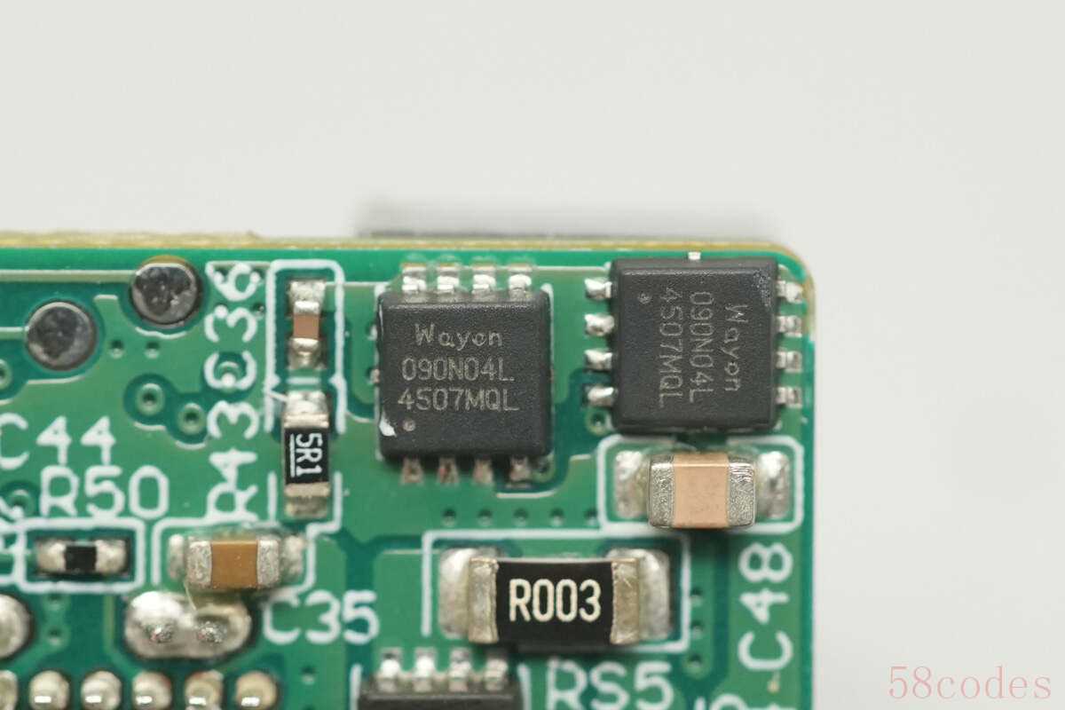 外挂两颗同步降压开关管同样是采用维安WMB090N04LG2。