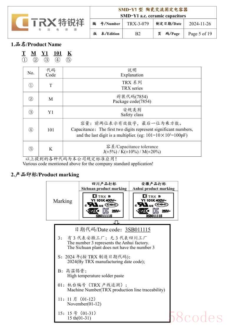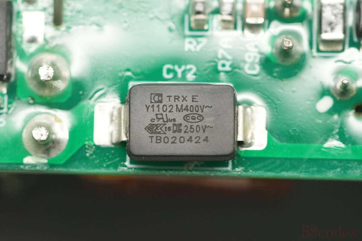 贴片Y电容来自四川特锐祥科技股份有限公司,具有体积小、重量轻等特色,非常适合应用于氮化镓快充这类高密度电源产品中。料号为TMY1102M。