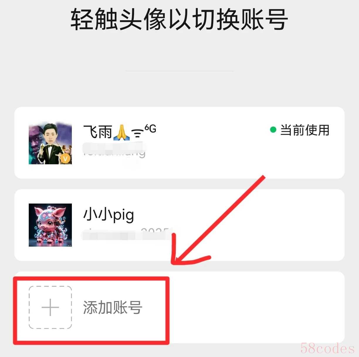点击这里的“切换账号”功能,可以看到最下方有一个“添加账号”的入口,点击之后可以登录其它账号或者注册新账号。