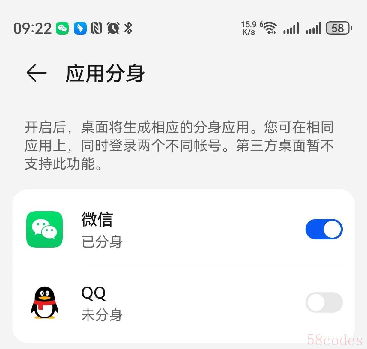 有些品牌的手机会支持手机中安装的所有应用软件双开,而部分型号的手机会比较保守, 只支持微信和QQ等常用的几款应用。