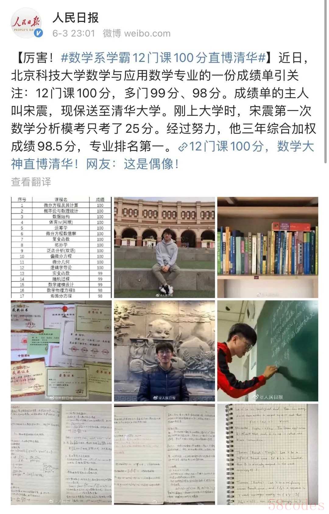 宋震,北京科技大学数理学院数学与应用数学专业2017级校友,现已保送至清华大学数学科学系攻读博士学位。他的事迹曾被人民日报等媒体关注。