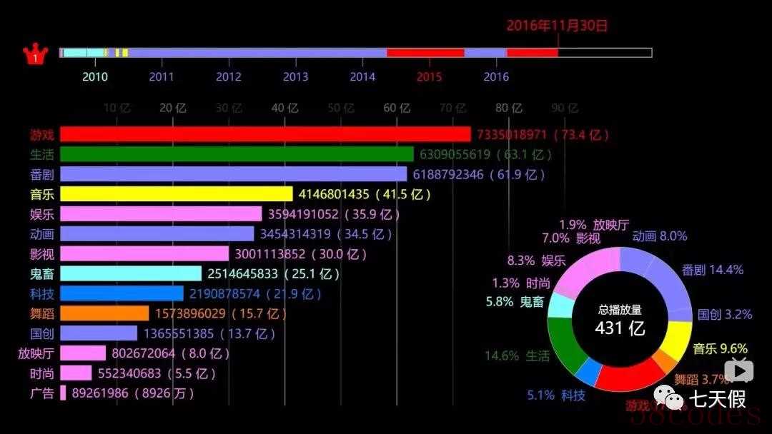 到了2016年底,B站播放量第二的区也不是番剧区了,而是以美妆旅游美食内容为主的“生活区”。