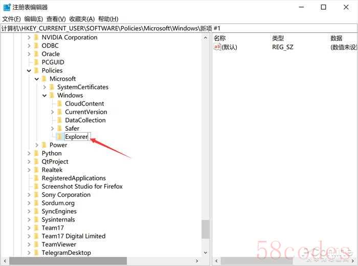 然后,将新建的项命名为“Explorer”。