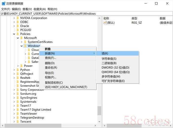 计算机HKEY_CURRENT_USERSOFTWAREPoliciesMicrosoftWindows