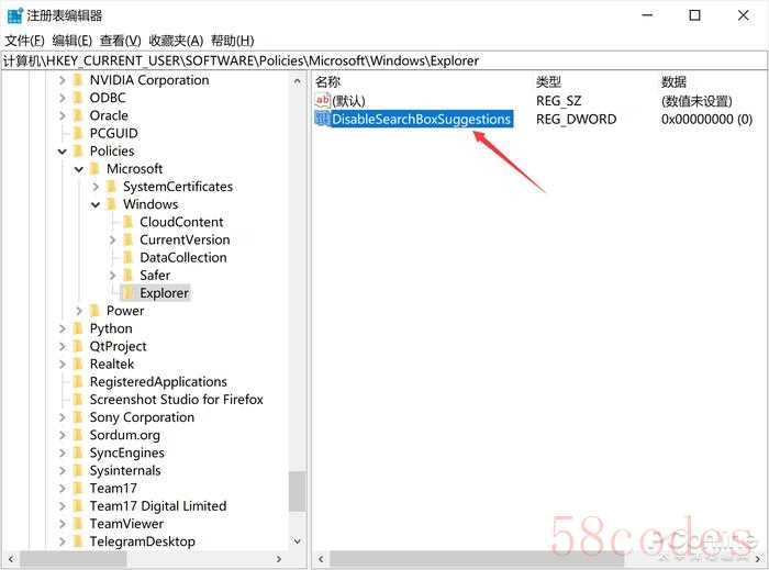 最后,修改这个键值的内容,设置为“1”即是禁用Windows 10的网络搜索,设置为“0”则是开启Windows 10网络搜索特性。