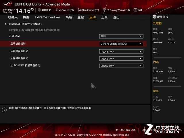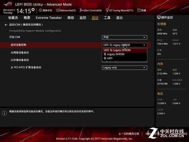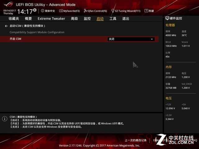 新主板都采用了UEFI BIOS,不过还是可以兼容之前的Legacy,上方的CSM(兼容性支持模块)就是对此进行设置的。
