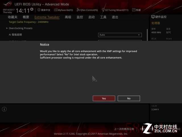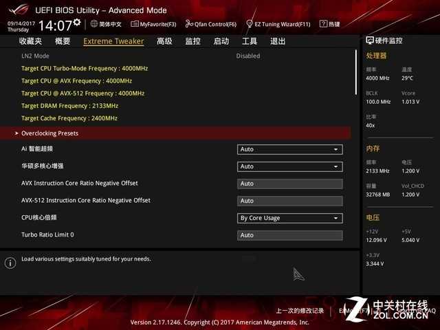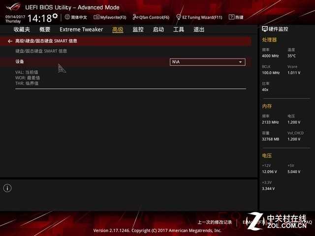 进阶操作,进BIOS可能很多人都是为了去给CPU和内存进行超频,首先按F7进入到高级模式,华硕的主板选择Extreme Tweaker选项卡(有的主板是AI Tweaker或者超频设置等名字)。