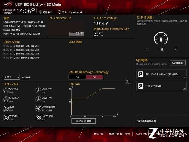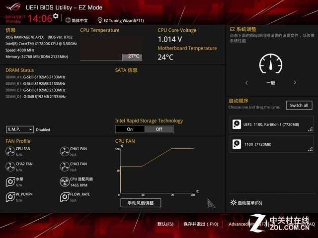 目前的新主板都配置了图形化的支持鼠标操作的BIOS程序,比如上图这种图形化BIOS。