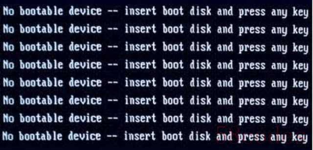 No bootable device(不同BIOS的提示语可能不完全一样)