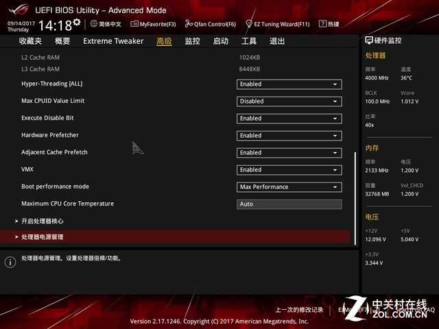往下拉进度条可以看到包括超线程技术的开关,核心管理电源管理等选项,如果有开关核心的需求可以到这里来找。