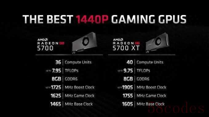 Radeon RX 5700显卡则拥有36组CU单元,共计2304个流处理器、64组ROPs和144组纹理单元,同样配置8GB GDDR6显存,显存频率也是14Gbps,核心基础频率则为1465MHz,游戏频率为1625MHz,Boost频率则为1725MHz,TDP为180W,也是PCI-E 4.0 x16接口。