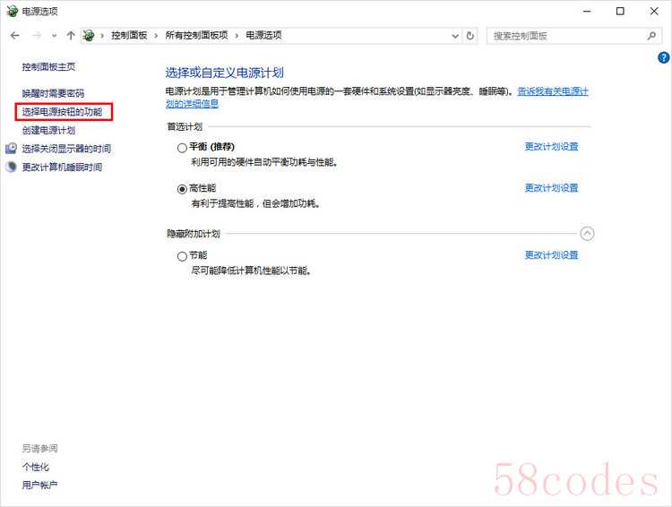3、选择电源按钮的功能选项。