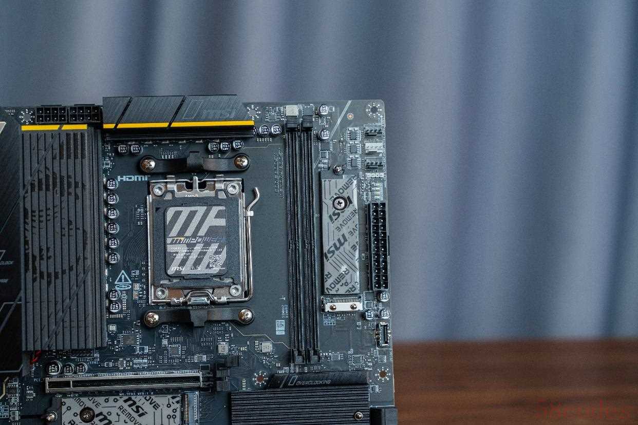 如果你想要点亮DDR5 8000MHz、9000MHz甚至官方宣称的10200+ MT/s的极限频率,那么只有这种双插槽的设计,才能确保信号质量,极大提高超频的成功率和稳定性。这是MPOWER系列为了极限性能做出的硬件取舍。