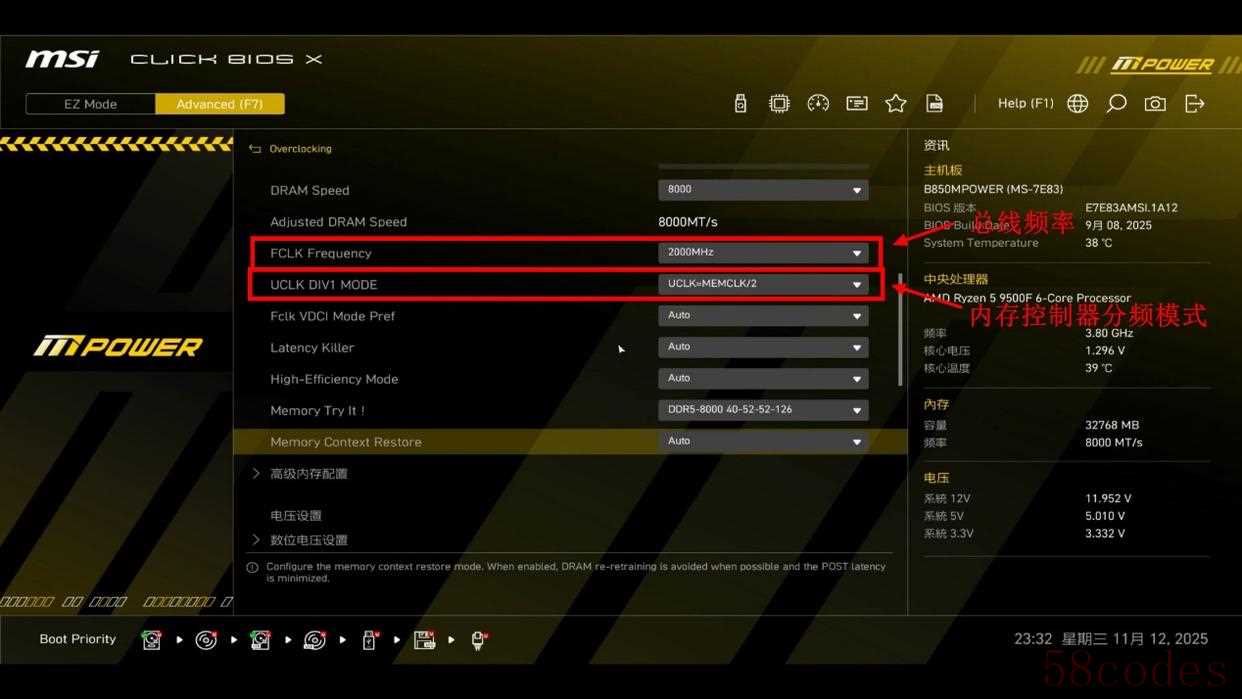 "主板限制:" 不同批次的 B850M-POWER 主板,以及不同的 BIOS 版本,其内存超频极限可能不同。这份指南提供的是通用方法,实际能达到多少频率需要自行测试。