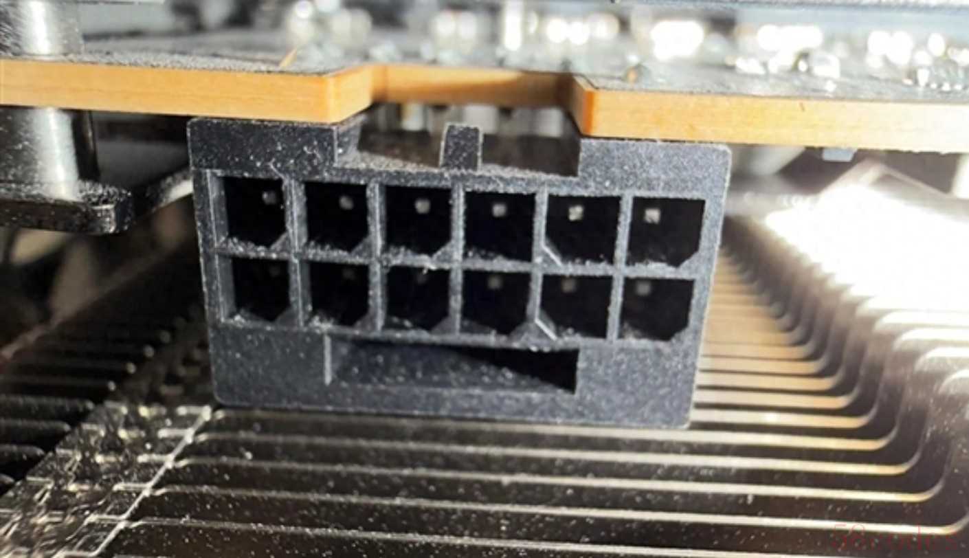 2025年10月刚修了台微星RTX 5090,供电接口直接烧熔成焦炭!用户说就正常玩《赛博朋克2077》,突然闻到焦糊味。拆开机箱一看,12VHPWR接口的5个针脚全烧黑了——这就是没插紧导致的电流集中。
