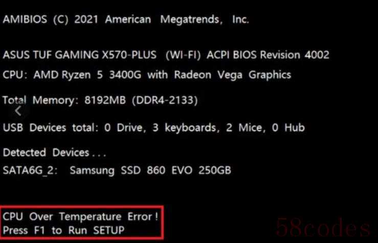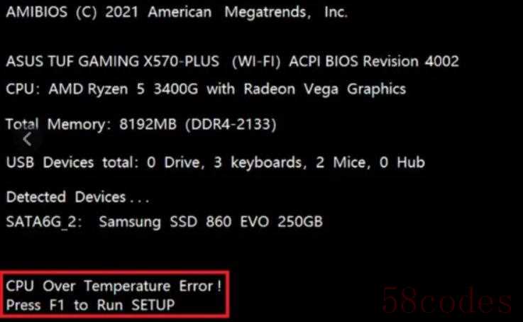 三、CPU温度过度(CPU Over Temperture Error)主板开机后,如果出现如图片中的提示:CPU Over Temperature Error!Press F1 to Run SETUP,此提示为CPU温度过高,请按照如下步骤进行故障排除: