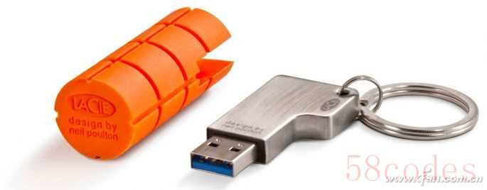 从基本设计看,这款U盘与摘下橡胶保护壳的LaCie Rugged U盘有些类似,金属壳体使它同样相当牢固耐用(图15),当然防护能力,特别是防水能力还是远不如专门设计的高防护型U盘。它带有尾部孔,可以方便地连接到钥匙串上随身携带,而且其较长的体型、逐渐收敛的后部设计与大型孔的配合,也让它插拔更方便省力,在台式机背部插满其他连线时也能轻松使用。它同样采用USB 3.0接口,最大传输速度为100MB/s。