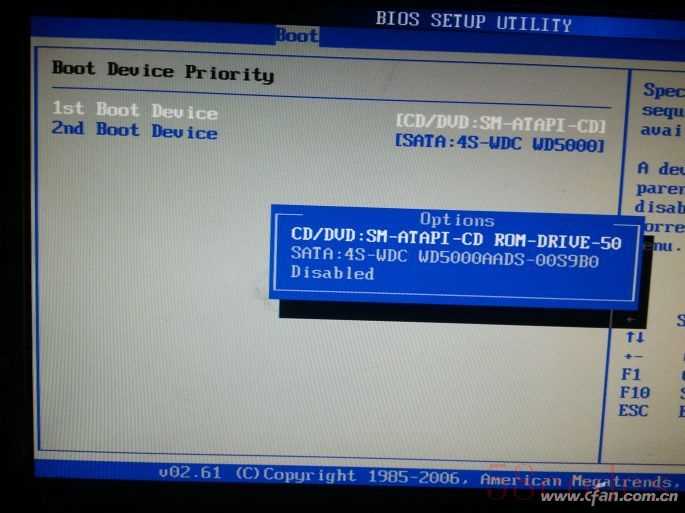 其实最先进的光驱应该是蓝光光驱(图4),但由于成本较高、版权保护以及半导体存储的迅速兴起,并没有得到普及,只有部分影视发烧友或高端品牌机有所配置。最基本的单面单层蓝光数据盘容量也可达到23GB以上,当然也可以做成WinPE系统启动盘,同时可搭载大量维护工具以及多个版本的操作系统安装版或备份镜像 。需要注意的是,也许正是蓝光光驱的普及度较低,在BIOS中的光驱启动选项一般只标为“CD/DVD”(图5),其实大家不用担心,直接选择系统的蓝光光驱即可。