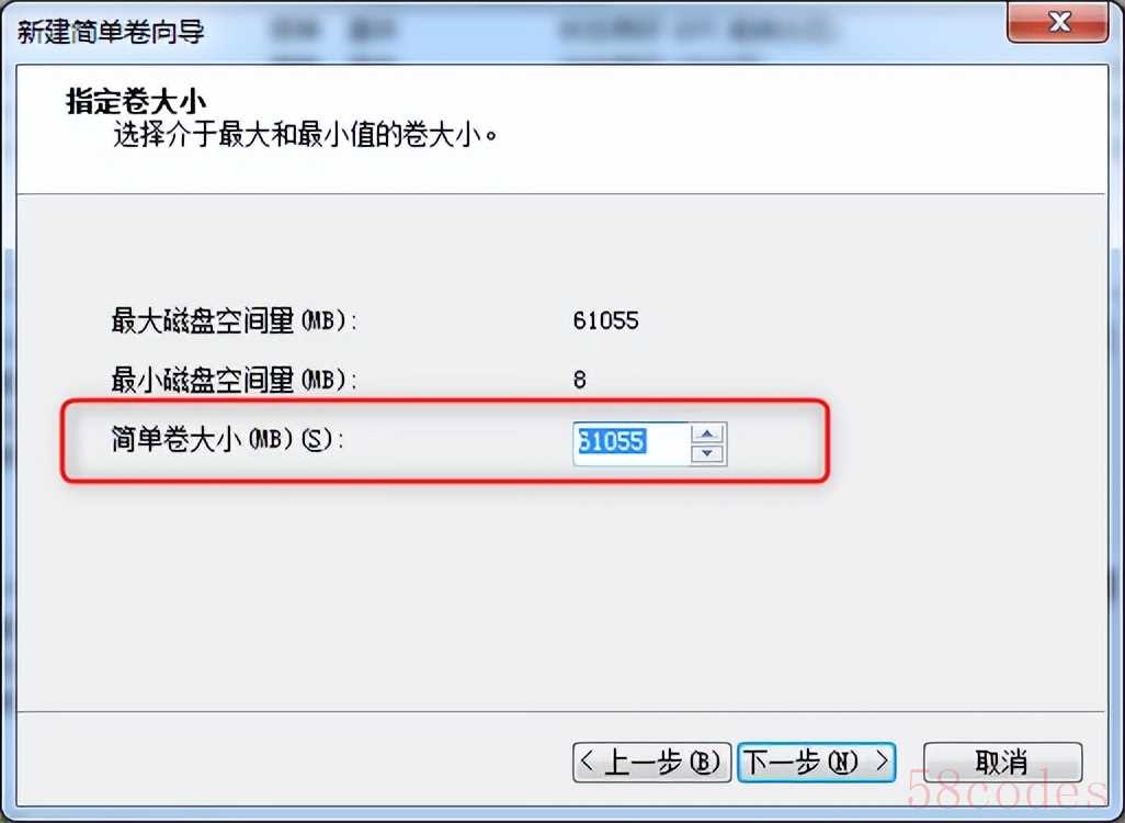 - 指定卷大小:如果你想把整个硬盘作为一个分区使用,就保持默认的最大值;如果你想把硬盘分成几个区,可以自行输入分区大小。