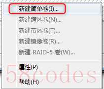 - 右键点击磁盘未分配的黑色区域,选择“新建简单卷”。