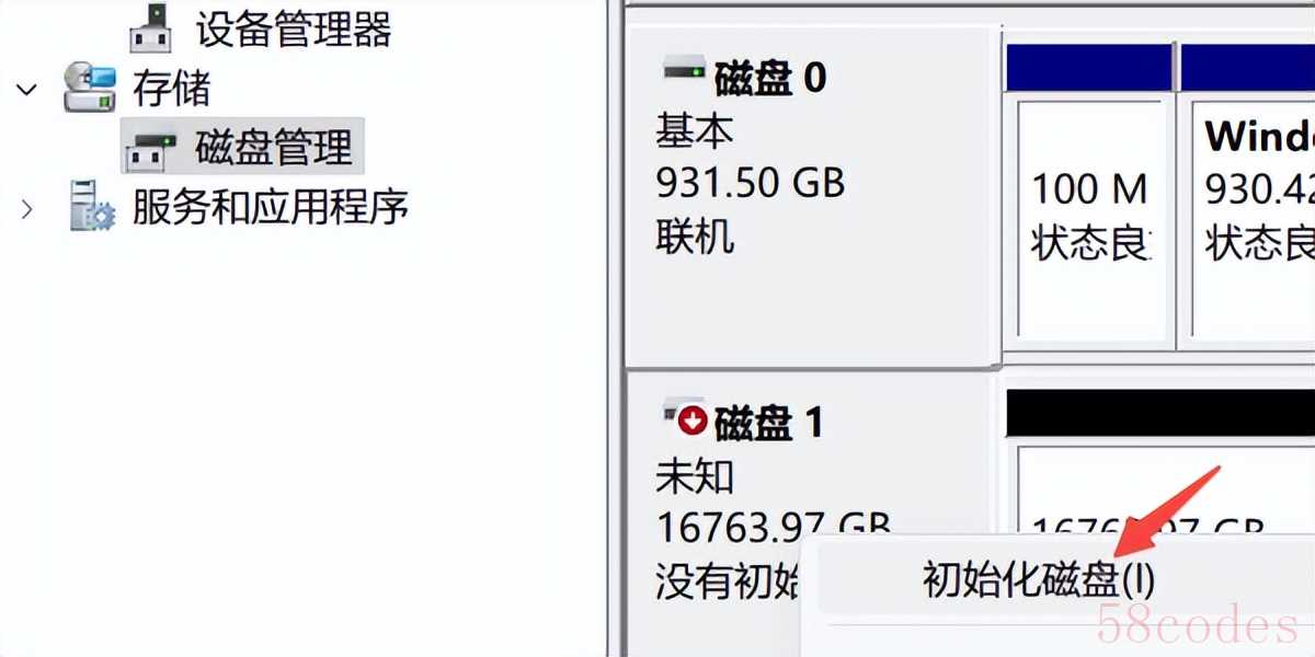 初始化完成后,你会看到磁盘依然是黑色的“未分配”状态。接下来,我们需要为它创建分区并格式化。