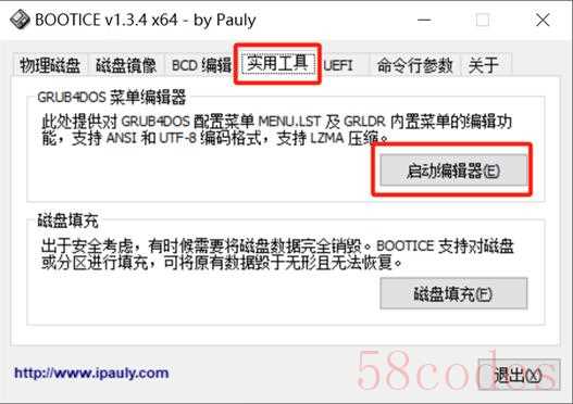 9、使用BOOTICE里的实用工具,启动编辑器打开TF卡根目录下的menu.lst文件进行修改。