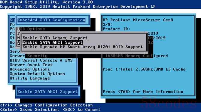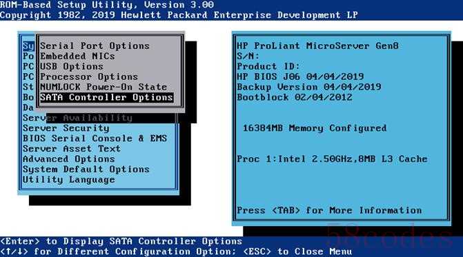 ### 3. 在HP MicroServer Gen8上设置从SATA5启动