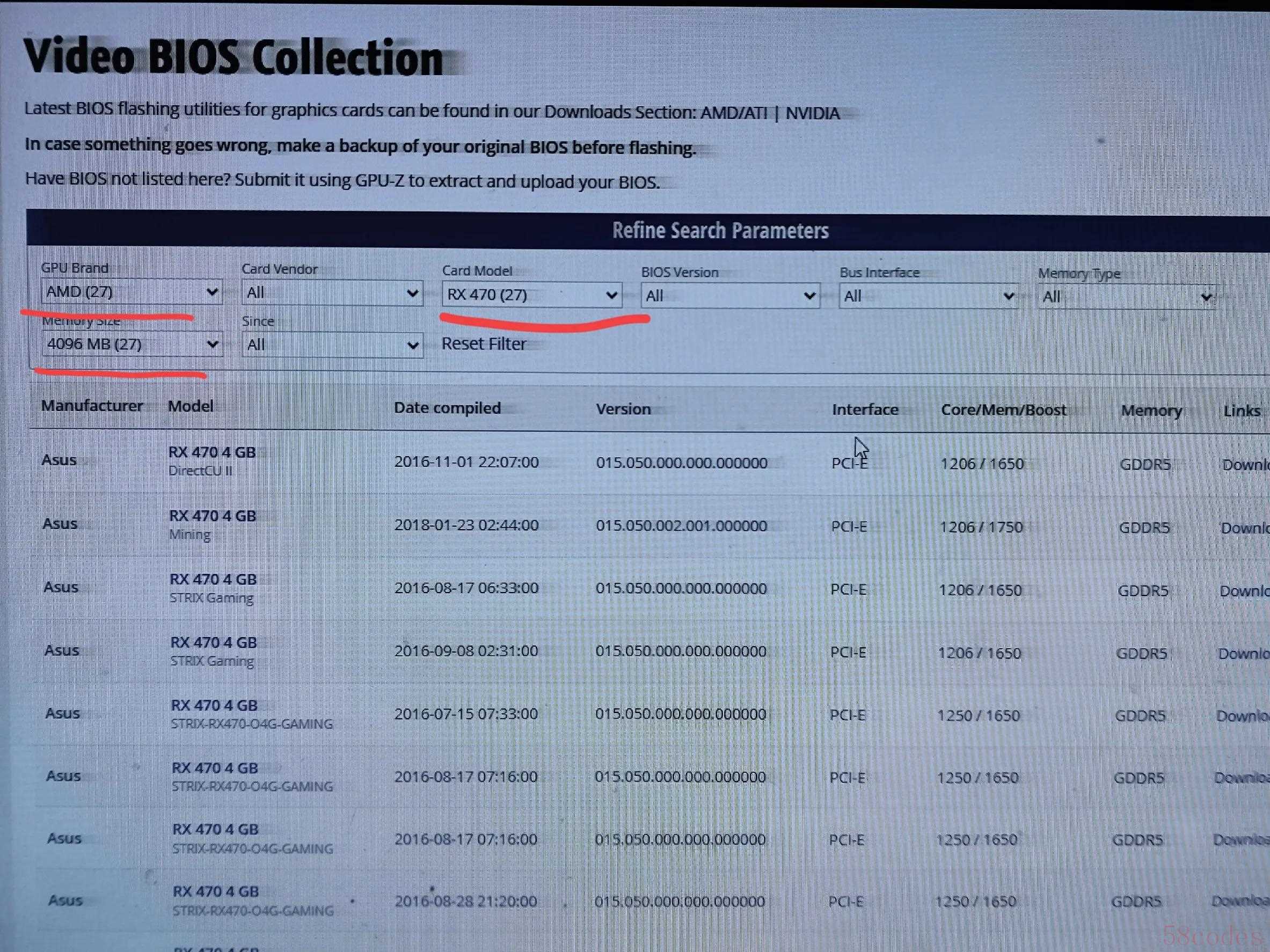 看图,我们把显卡的品牌,型号,显存大小输入进去,就会出来很多bios了