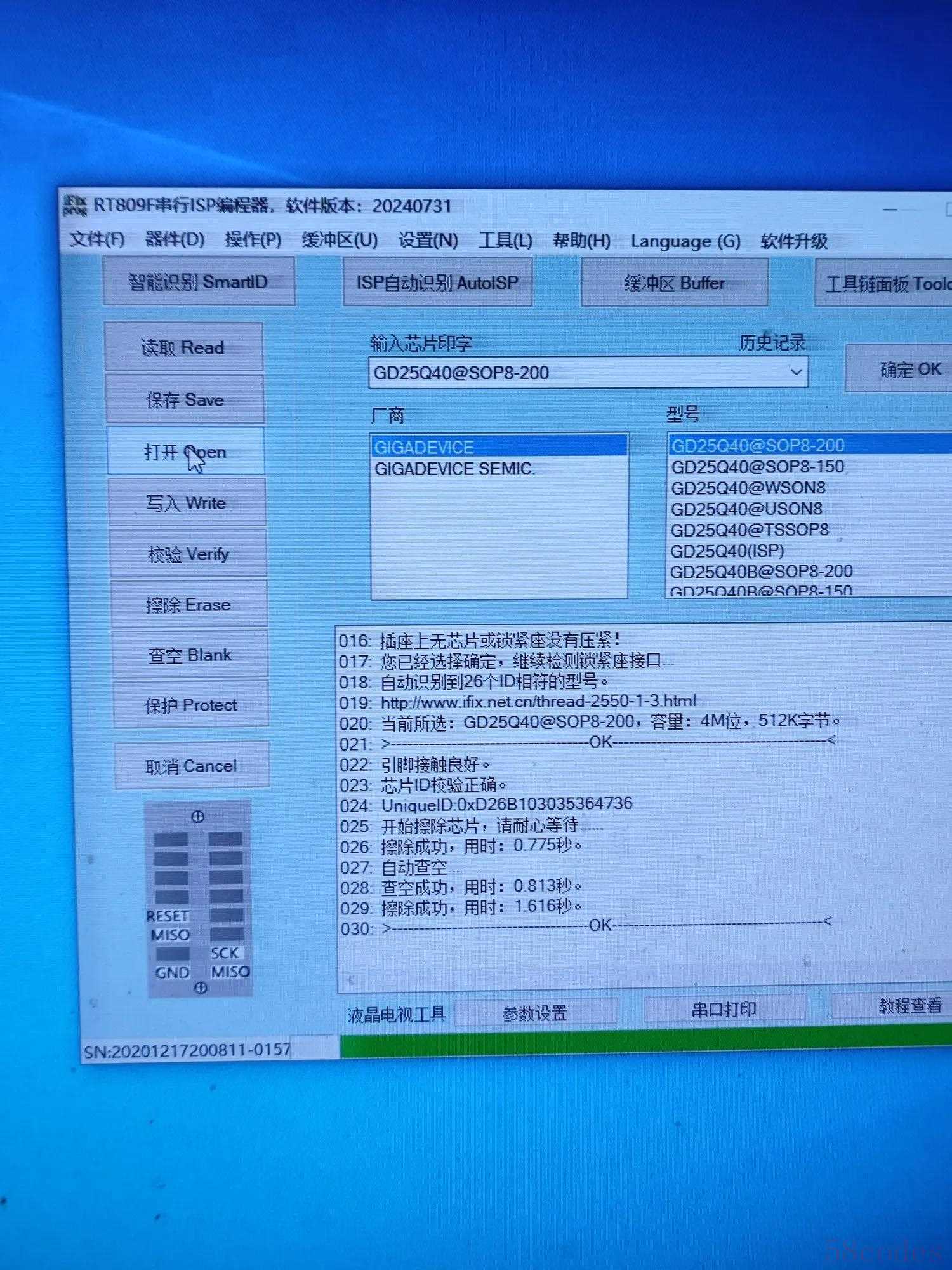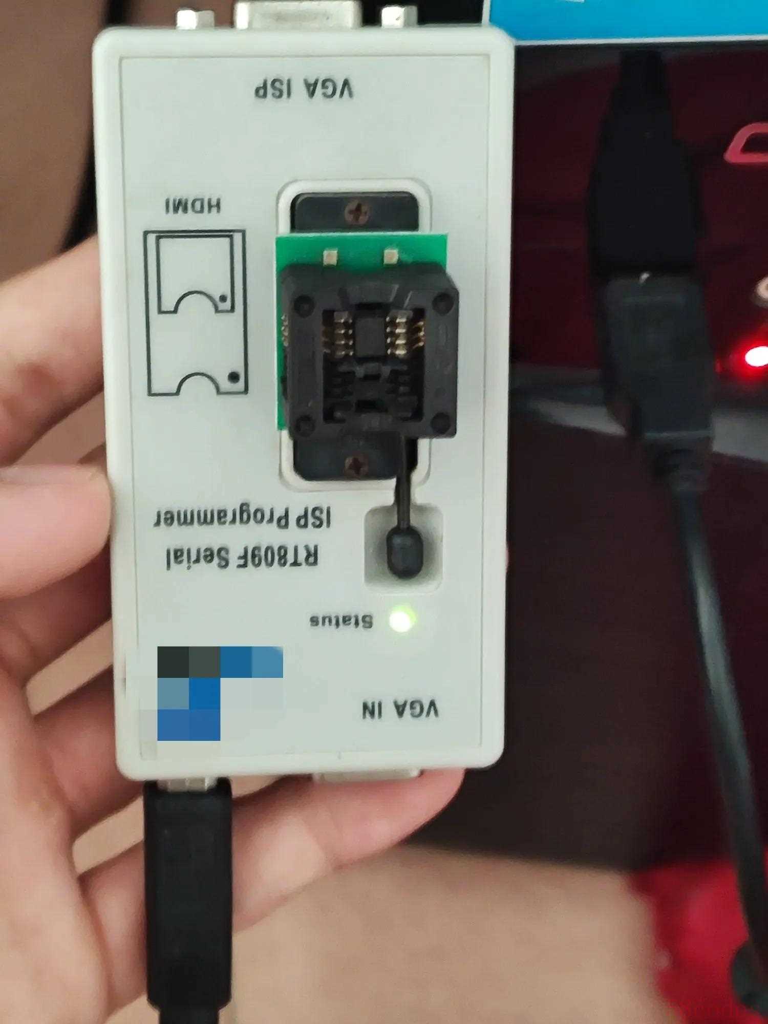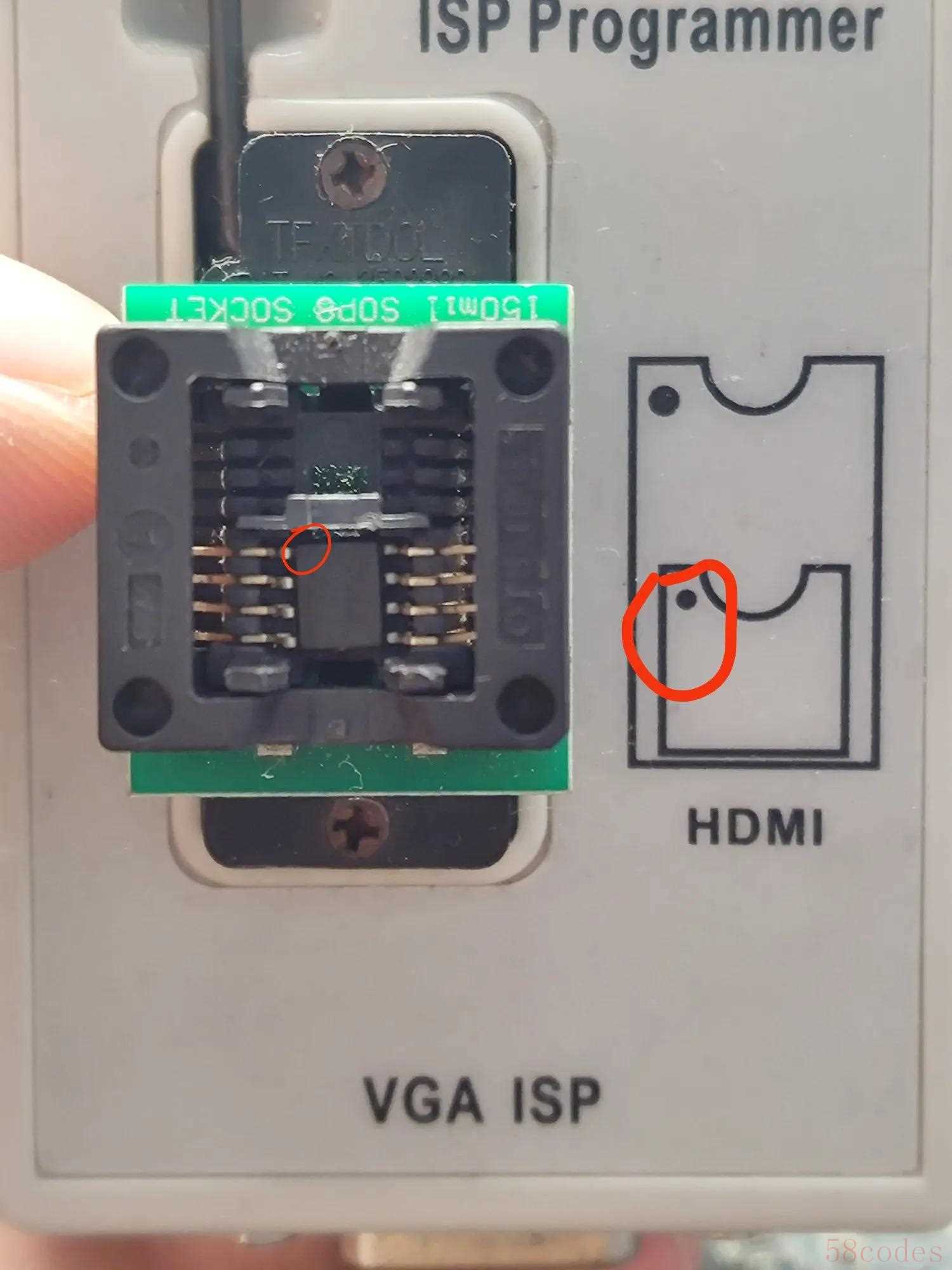 把芯片安装在编程器上,注意芯片位置别搞反了,图片有标注!芯片的点在左上角!
