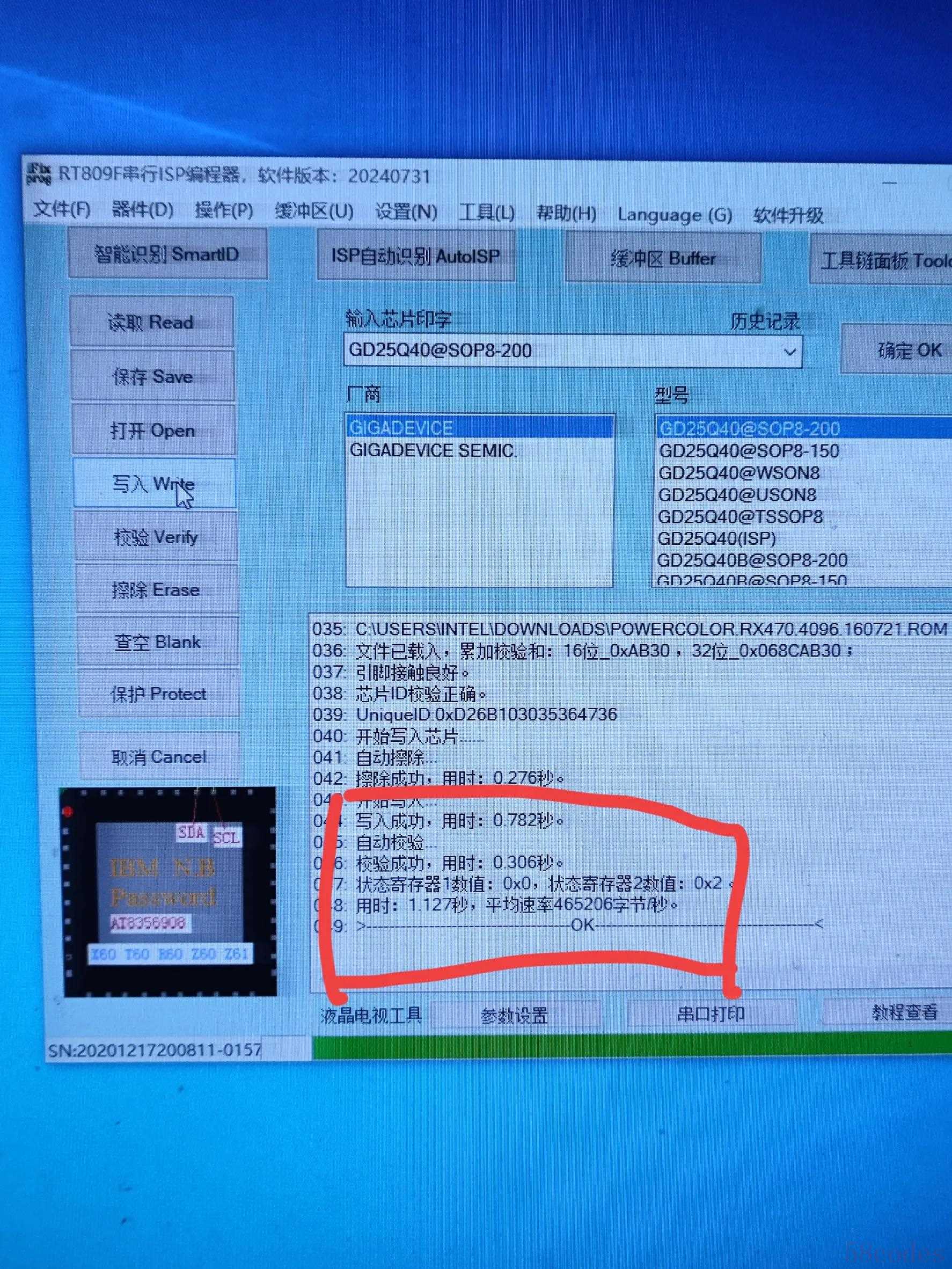 我的是一张470显卡 客户告诉我,他自己软刷试不成功,发给我用编程器刷回去
