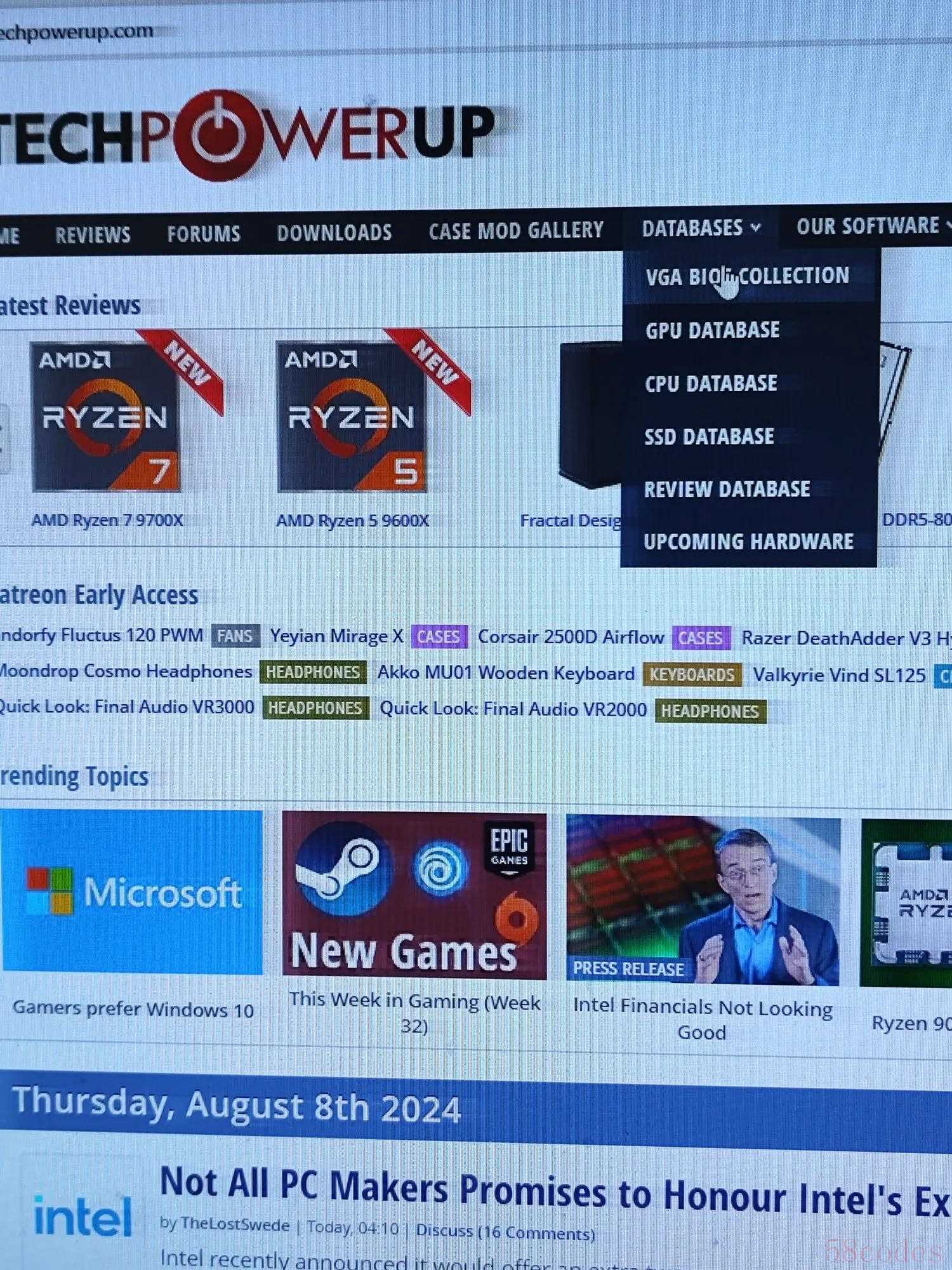 我们打开GPUZ官网,直接浏览器搜GPUZ官网就行,之后点击DATABASES→VGA BIOS如图!