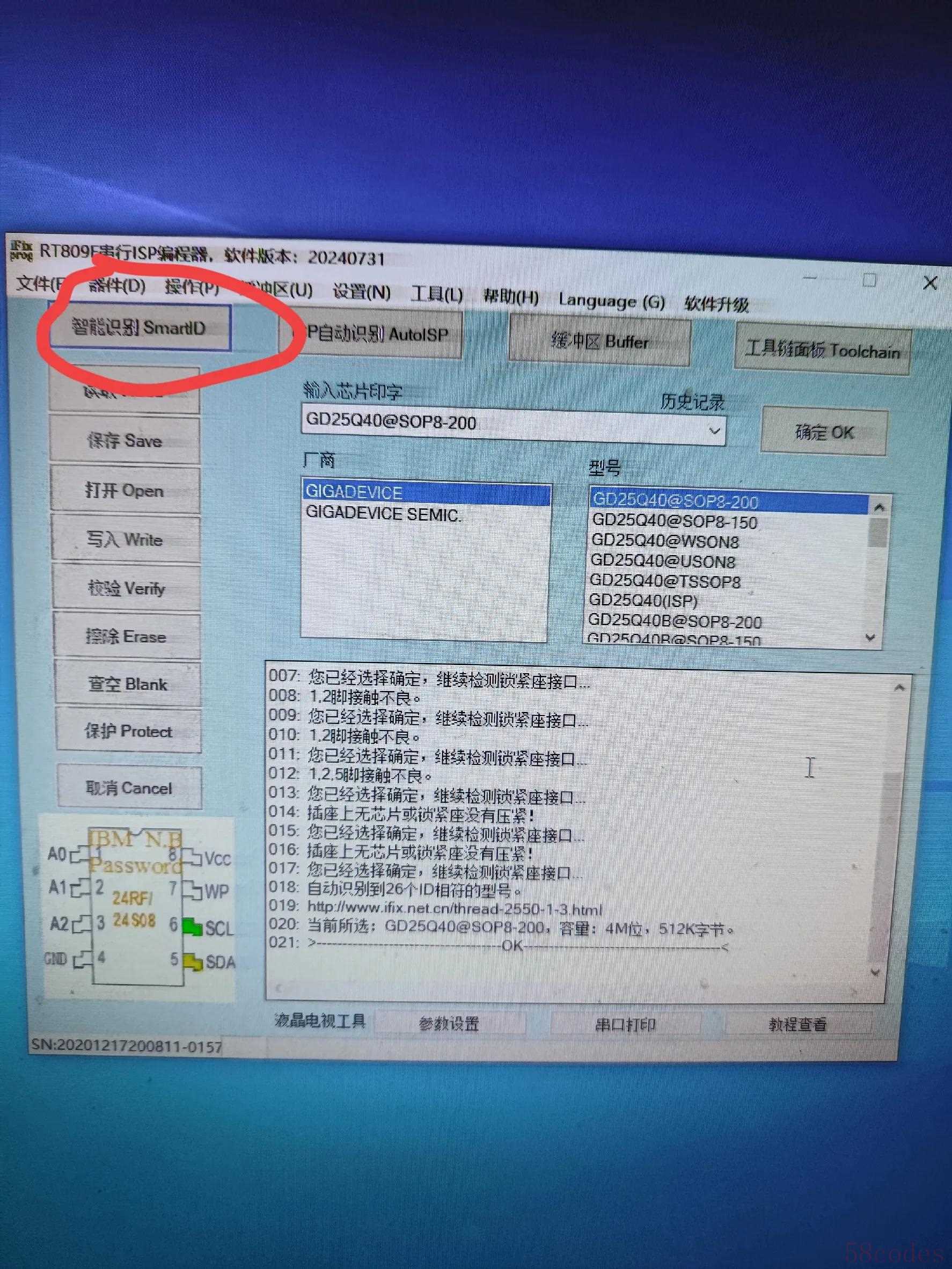 我们点击软件的智能识别 就会识别出我们芯片型号了