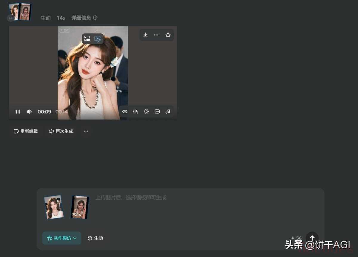 即梦的"动作模仿"功能是我最喜欢的。逻辑很简单: