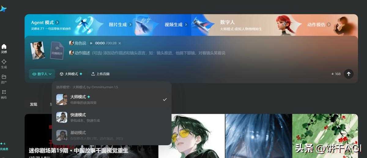 更牛的是"大师模式"。这个功能由字节跳动自研的OmniHuman-1模型驱动,简单说就是: