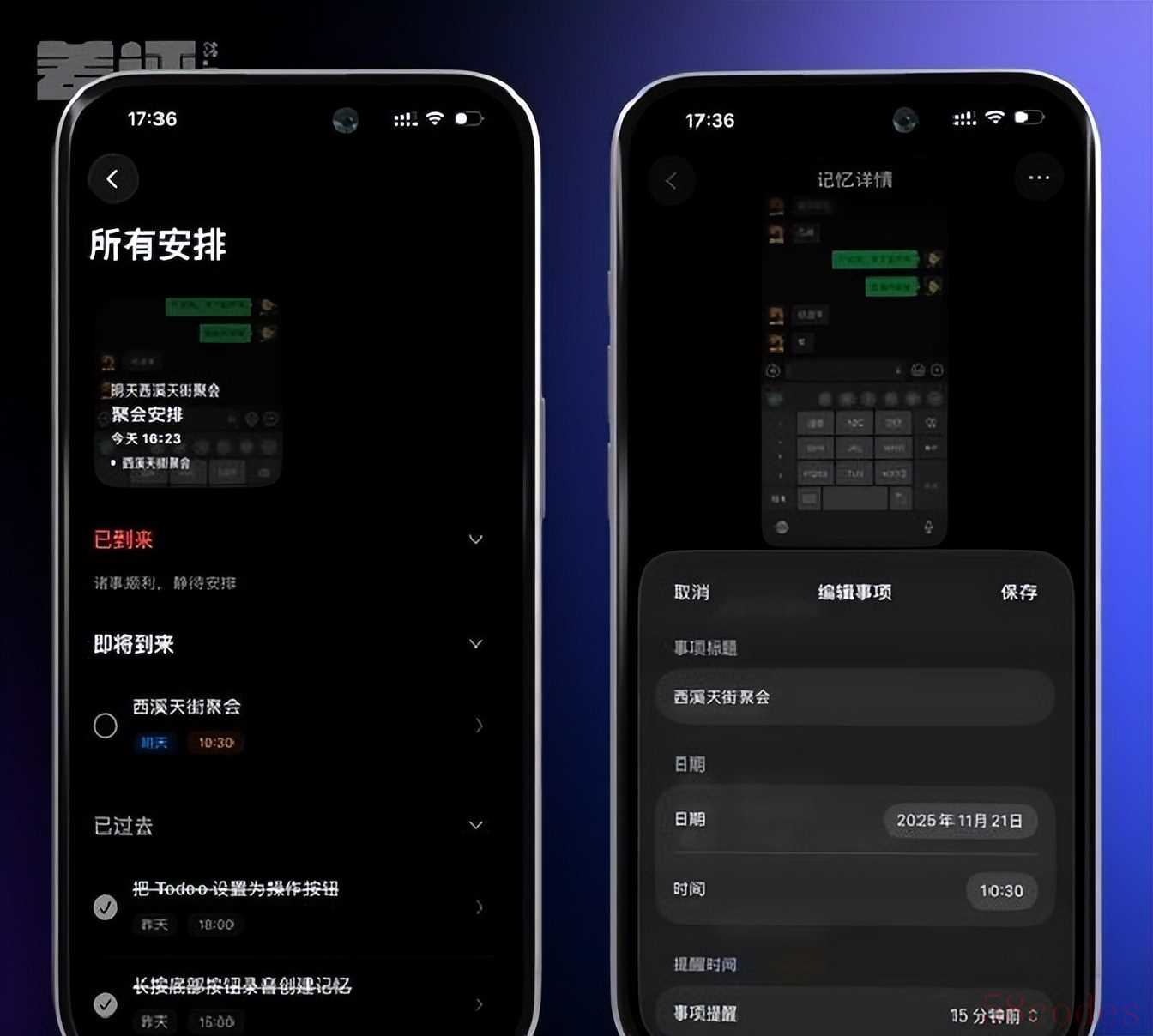 比如微信聊:“11点见→改10点半→不行得11点→OK”,Todoo居然抓了10点半(不是最终的11点)。可能是接入的模型能力,也可能是逻辑要优化,得等更新。