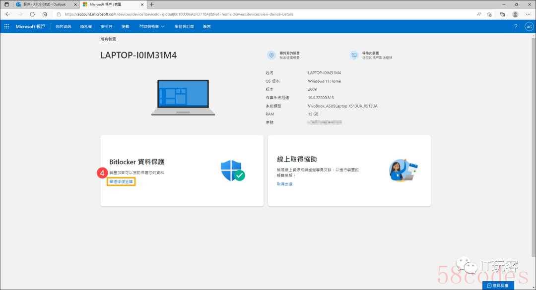 进入设备信息后,在BitLocker数据保护字段中,点击(4)。