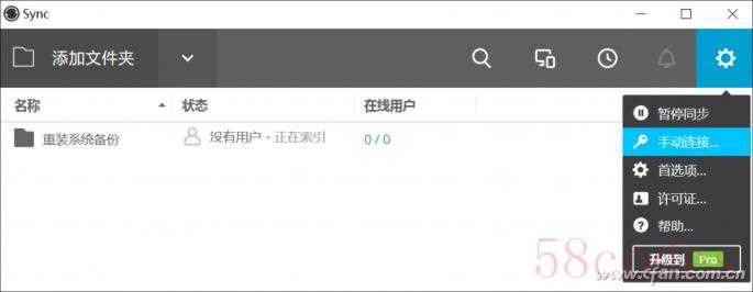 如果我们想同步别人共享的东西,或是在其他设备上同步自家电脑通过BitTorrent Sync共享的文件夹,只需点击BitTorrent Sync客户端右上角的设置图标,选择“手动连接”,将对应的秘钥输入进去,然后选择电脑内的另一个文件夹。之后,别人共享的文件夹内容就会开始同步到你选的那个文件夹里。
