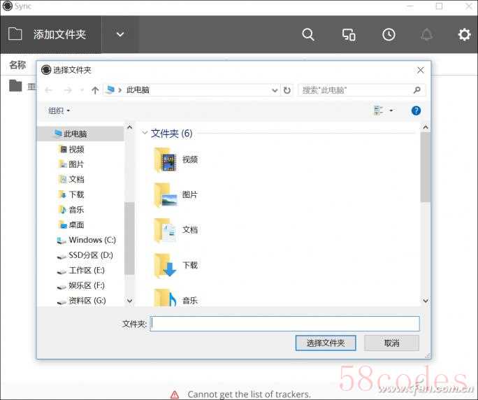 点击BitTorrent Sync客户端左上角的按钮,就能将PC硬盘内的文件夹添加到共享。