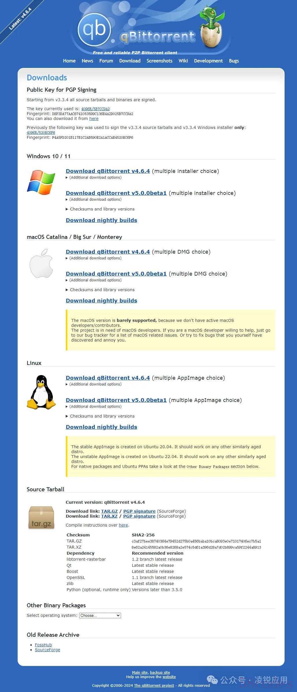 打开qBittorrent官方网站,点击顶部菜单“Download”,进入下载页面,选择需要的版本下载即可,如下图所示: