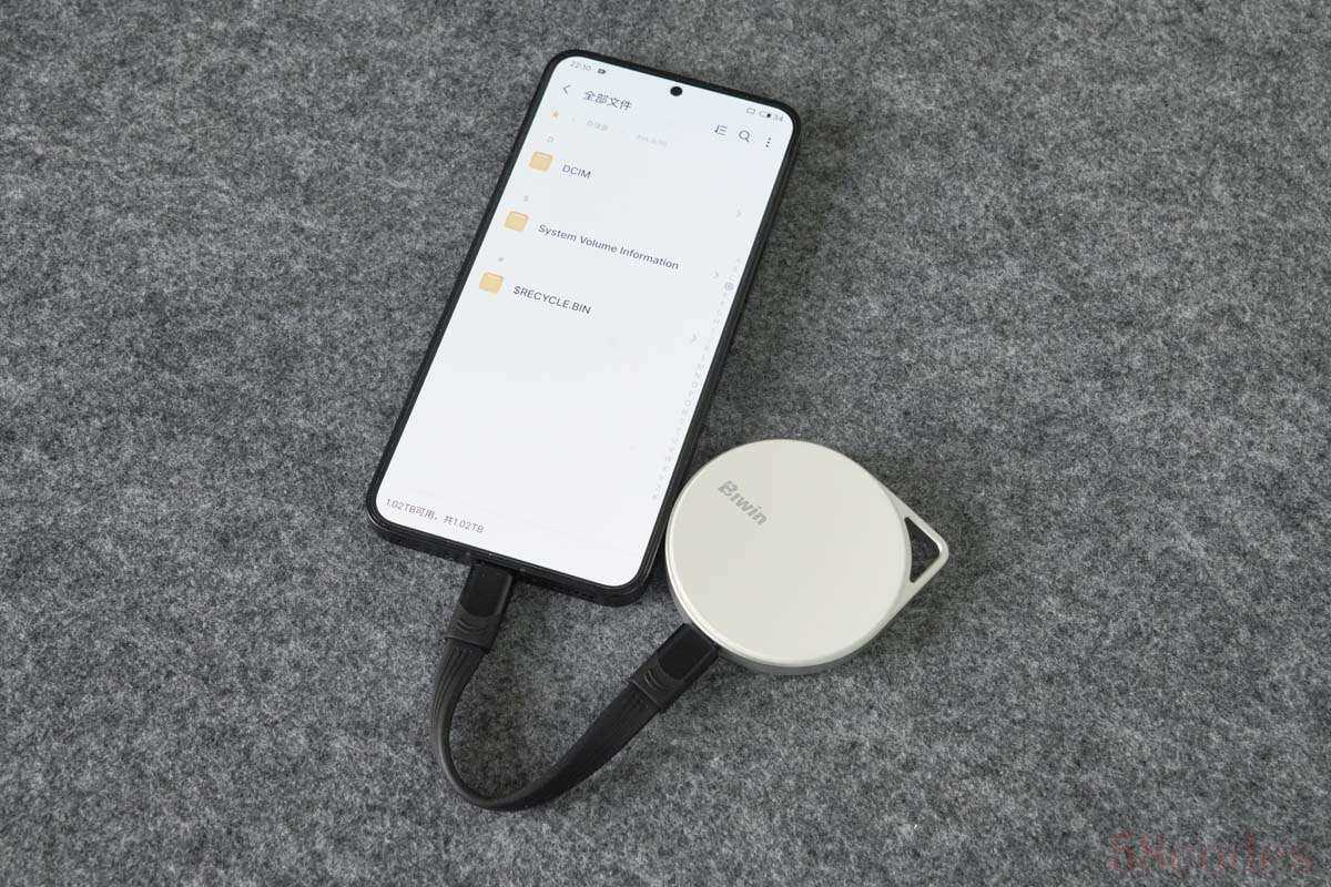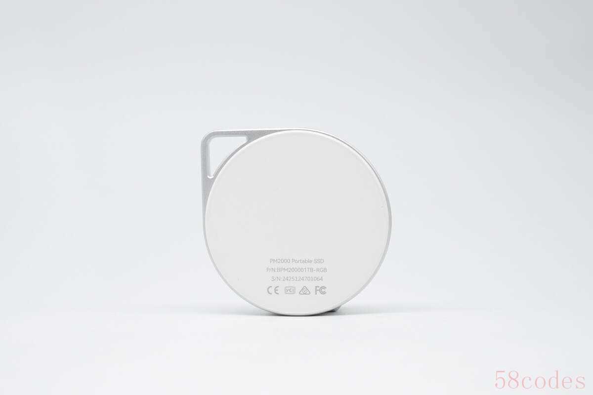 佰维PM2000移动固态硬盘以其简洁现代的外观设计吸引了不少用户,移动硬盘采用圆形结构,整体银白色配上磨砂金属质感,视觉效果出众。此外,产品设计考虑到便携性,右上角的悬挂孔让用户可以轻松携带,随时随地满足存储需求。