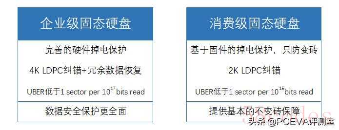 企业级固态硬盘使用冗余数据恢复技术来处理闪存中多个die失效的故障,并且不影响数据完整和业务运行,UBER不可修复的错误比特率通常会比消费级SSD低一到两个数量级。