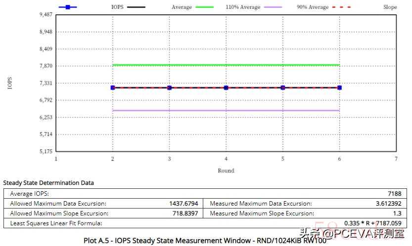为了使SSD达到稳定态,PTS测试需要先执行预处理,也就是我们常说的“填盘”:用随机数据写入全盘2倍容量。而后执行一系列随机写入,稳定态的判定方式为:检查测试窗口中的4K随机写入、64K R65:W35混合随机写入和1024K随机读取三项成绩,允许波动范围+-10%,确认SSD已经进入稳定态后才会继续后续测试。