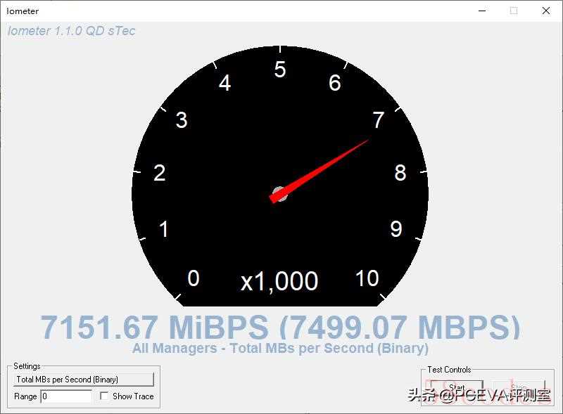 不过这一次CrystalDiskMark失灵了,Windows系统似乎在1000K IOPS左右存在一个瓶颈,无法测出DapuStor R5101应有的1750K随机读取IOPS。即便请出IOMeter也仅仅是能跑出7500MB/s顺序读取,4K随机读取IOPS依然无法体现出来。