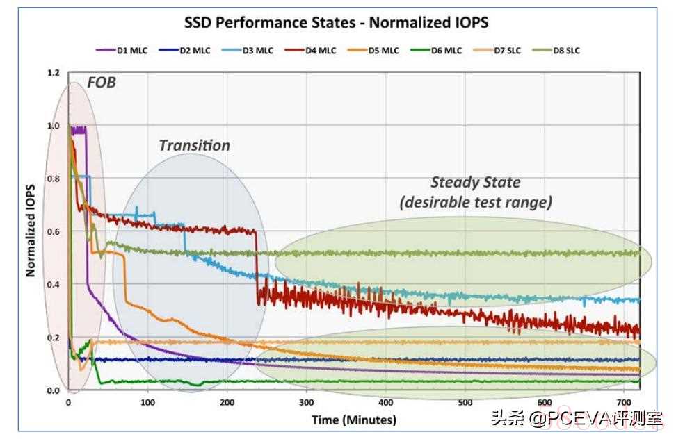 PTS测试在设备而非文件系统级别进行,通俗的说就是SSD在没有分区的状态下进行。PTS测试的是SS(Steady State稳定态)性能,而非FOB(Fresh-Out-of-the-Box开箱状态即出厂态)表现。