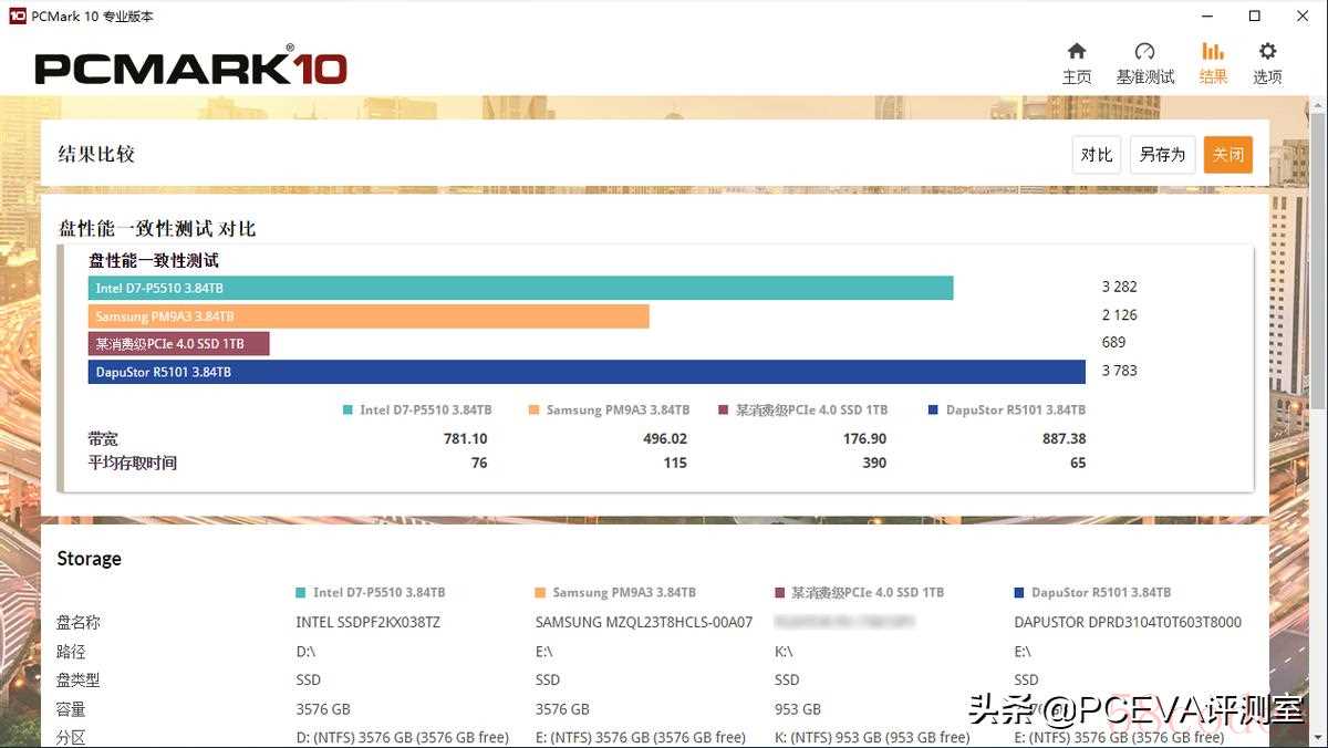 然后是英特尔D7-P5510 3.84TB的成绩: