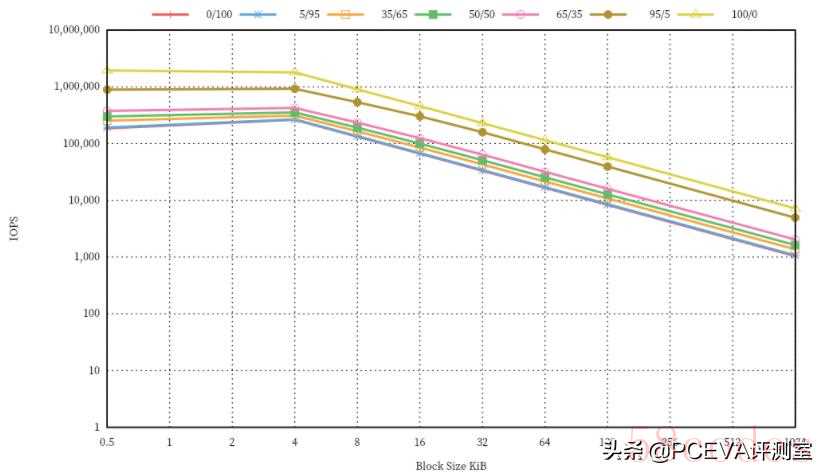 消费级SSD在自身能力上同企业级SSD有着巨大差距,能顺利跑完测试就算成功了。DapuStor R5101则延续它在纯读取和纯写入时的领先优势,以459K IOPS的成绩夺魁,领先第二名的三星PM9A3大约28%。