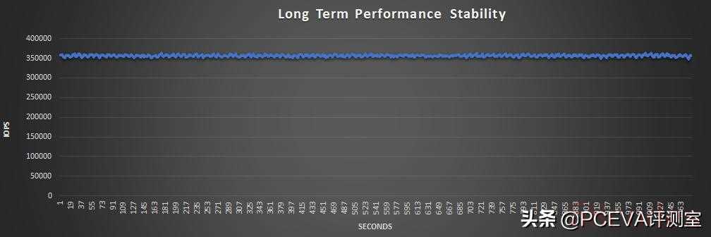 三星PM9A3 3.84TB的稳定态混合随机读写20分钟平均IOPS为356543,变异系数为0.70%。