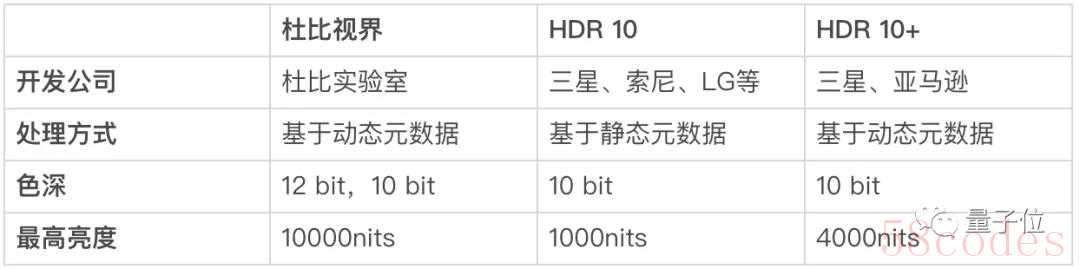 简单来说,HDR的画面更丝滑、亮度更真实、色彩更丰富。注意,上面这些HDR标准,指的都是HDR显示的标准,而非拍照用的HDR调色效果。HDR调色,标准上还是没能逃离SDR,指同时拍摄多张不同曝光度的照片,再用算法将照片中的高光和暗部细节结合,合成一张符合人眼感知的照片,其实并不能还原世界真实的亮度。因此,HDR显示就成了一批厂商争先恐后在做的技术,也因此导致HDR标准有点“乱七八糟”。目前比较出名的三套标准是杜比视界(Dolby Vision)、HDR 10和HDR 10+,其中又以杜比视界的解决方案最为先进,我们简单对比一下: