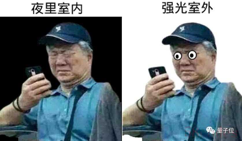 从亮度来看,SDR最高亮度只有100nits,但HDR的最高亮度至少是1000nits,同时亮度范围更广,还原的画面亮度才更接近真实世界。通俗来说,如果亮度范围小,夜晚关灯后即使开黑暗模式+最低亮度,还是会感到刺眼;白天室外强光下,最高亮度也无法看清屏幕,像这样: